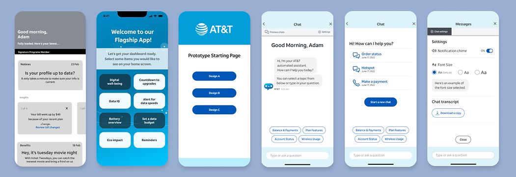Meet Andi, a world-class chatbot developed to serve over 100 million AT&T customers with seamless, intelligent support. The project aimed to design a strategically branded persona that embodies the AT&T voice, elevating the virtual assistant experience through thoughtful UX and conversational design. With a clear focus on driving self-service adoption and achieving call shed objectives, Andi was built to deliver efficient, humanized interactions at scale.